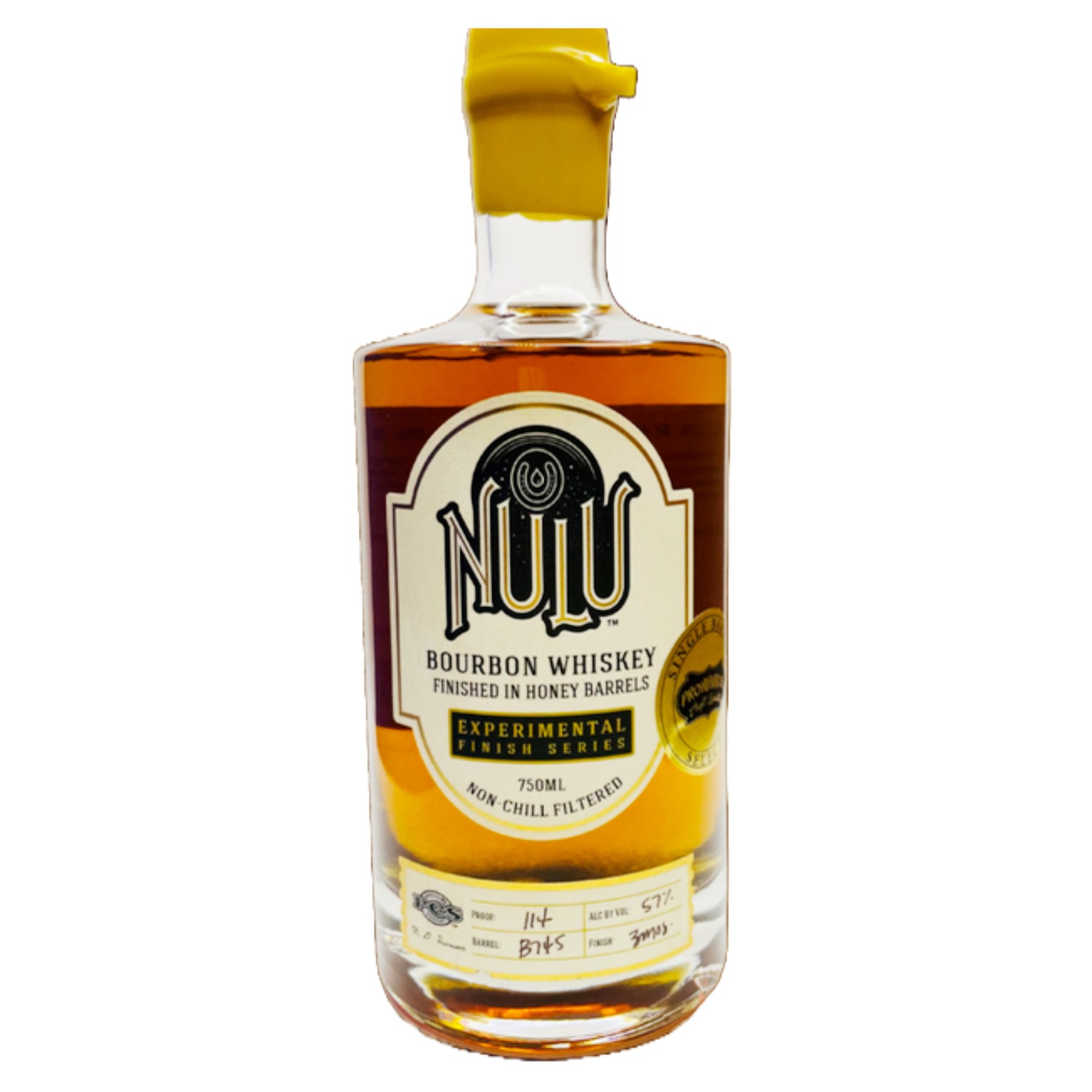 NULU 6-Year-Old Single Barrel Bourbon Whiskey Honey Barrel Finish is an exquisite expression from Prohibition Craft Spirits. This limited edition bourbon is aged for 6 years and then finished in honey barrels, previously held local honey for several months. This finishing process imparts the bourbon's unique sweetness and complexity, enhancing its overall character.